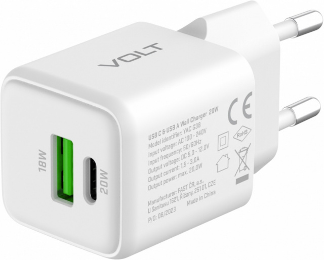 YENKEE USB C/A mains charger 20W/18W 3A Power delivery 3.0 QC3.0