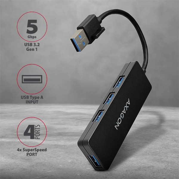 AXAGON HUE-G1A 4x USB3.2 Gen 1 SLIM hub w. 14cm Type-A cable