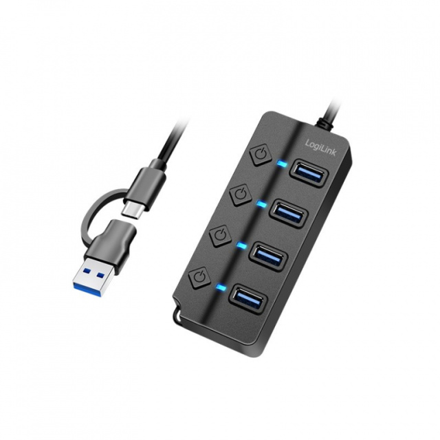 LogiLink USB3.2 Gen1 HUB, 4xUSB-A on/off switch