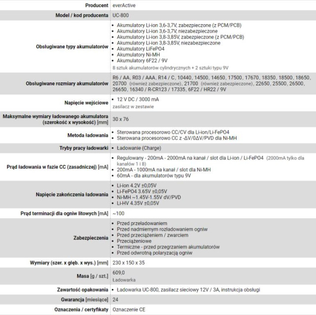 Charger for cylindrical Li-ion and Ni-MH batteries everActive UC-800
