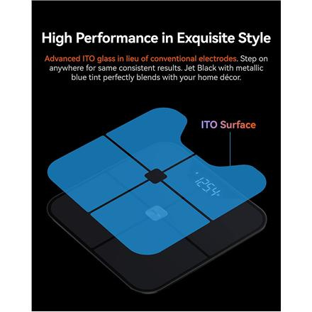 • Mõõdab kehakaalu, keharasva, kehavee, lihaseprotsendi, KMI; muud väärtused rakenduse kaudu (metaboolne vanus, BMR/AMR kalorite näidik, luude mineraalmass)• Ühikute vahetamise...
