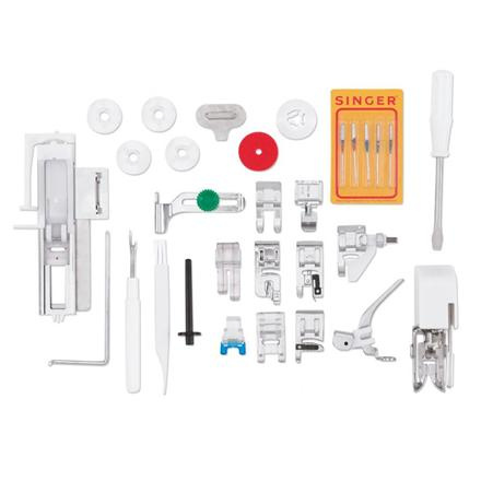 Kaasas tarvikud | General Purpose Foot, Zipper Foot, Buttonhole Foot, Satin Foot, Blind Hem Foot, Open Toe Foot, Cording Foot, Darning/Embroidery Foot, Even Feed/Walking Foot, Overcasting Foot, Button Sewing Foot, Narrow Hem Foot, Quarter Inch Foot, Quilting Bar, Pack of Needles, Bobbins (Class 15 transparent), Seam Ripper/Lint Brush, Auxiliary Spool Pin, Spool Pin Felt, Thread Spool Caps, Screwdriver, Large Extension Table and Dust Cover |