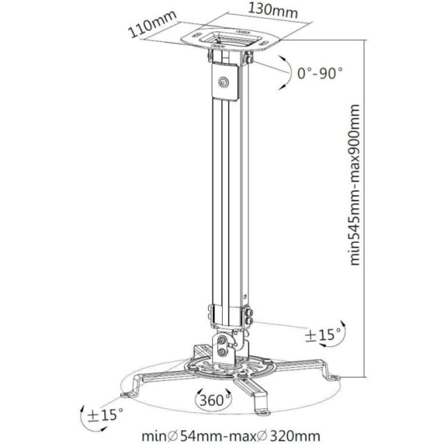 Techly Deckenhalterung Beamer 54-90cm Silber