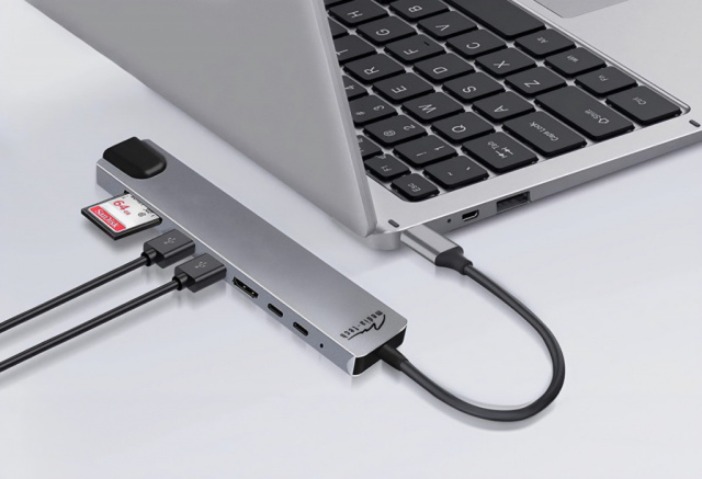 UNITEK HUB USB-C H1118A; USB-A x3, USB-C, HDMI, SD, microSD