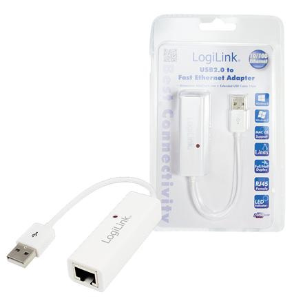 Logilink | Fast Ethernet USB 2.0 to RJ45 Adapter: | 0.115 m | White | USB-A to RJ45 UA0144B