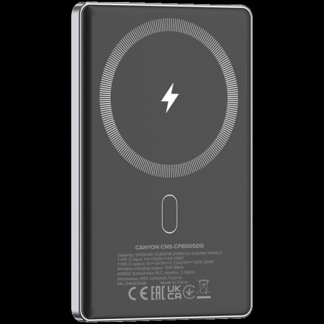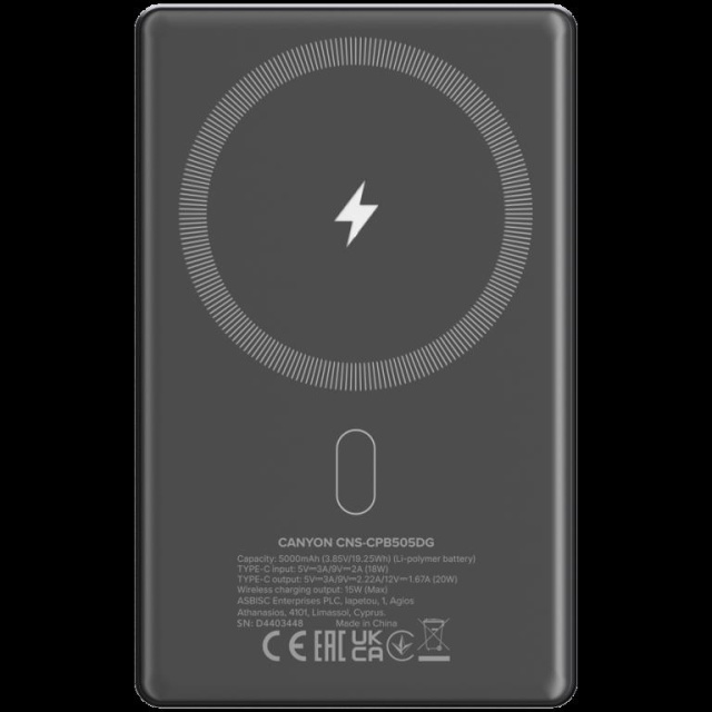 CANYON power bank OnPower 505 slim Magnetic 5000 mAh PD20W Dark Grey