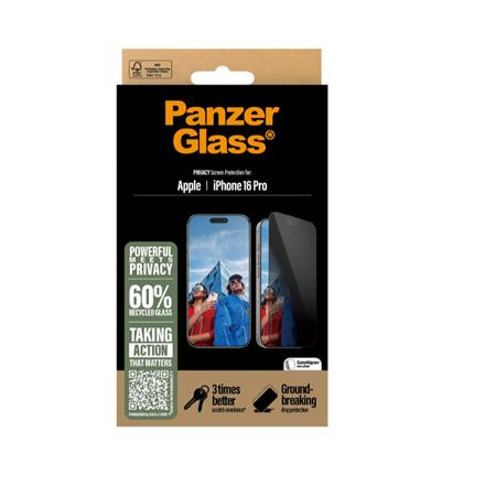 PanzerGlass Screen protector | Apple | iPhone 16 Pro | Glass | Black | Ultra-Wide Fit P2862