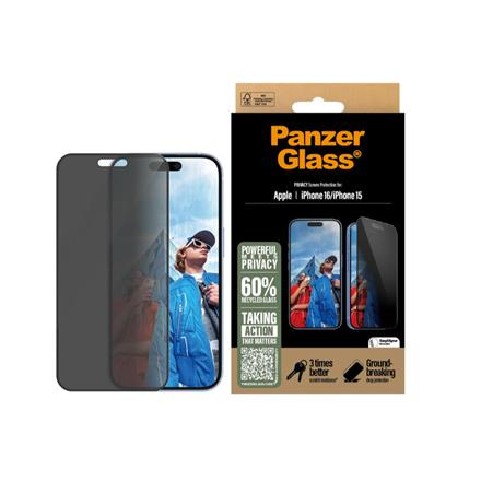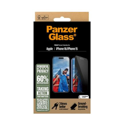 PanzerGlass Screen protector | Apple | iPhone 16/iPhone 15 | Glass | Must | Ultra-Wide Fit P2861