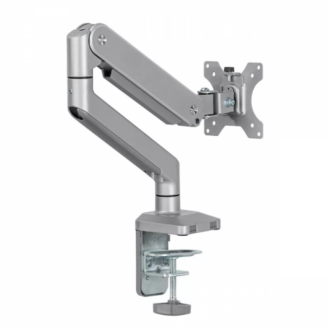 Ergo Office Aluminium Monitor Mount with Gas Spring, Double Arm, VESA 75x75/100x100, 17"-32" 10 kg Silver, ER-447