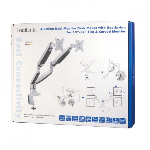 LogiLink Dual monitor mount, 13-27, 2x9kg. max
