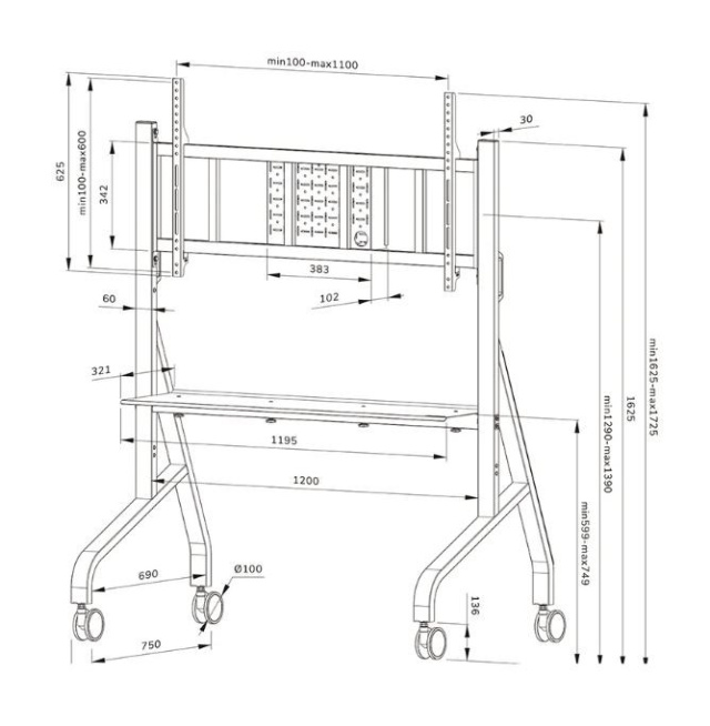 Neomounts FL50-575WH1 MOVE Go 65-110'' 100x100-1000x600 125kg h:129-139cm MOVE Go XL