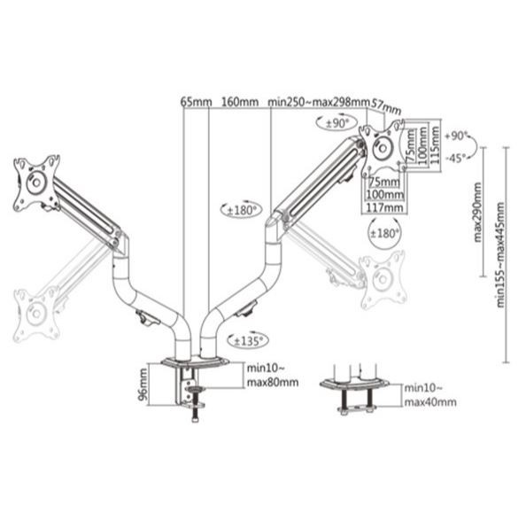 Gembird Adjustable desk 2-display mounting arm (tilting), 17 inches -32 inches, up to 8 kg